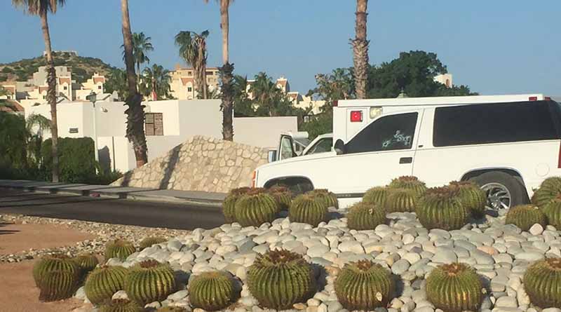 San José del Cabo.-Esta tarde pistoleros acribillaron a dos hombres que viajaban a bordo de una camioneta con vidrios polarizados en la glorieta de Fonatur.