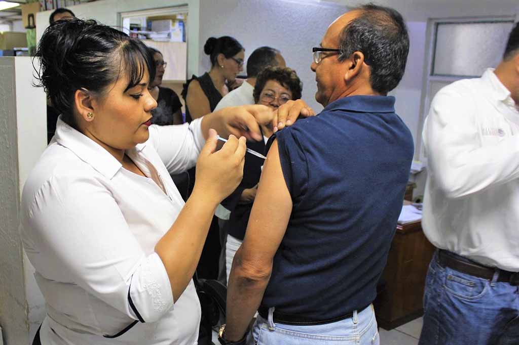 La Paz, Baja California Sur.- Como parte de las acciones emprendidas por el Gobierno del estado para proteger el bienestar de las familias, la Secretaría de Salud acercó la aplicación de la vacuna contra la influenza a su personal de oficinas centrales, con la premisa de que la inmunización es la mejor alternativa para evitar esta infección respiratoria viral.