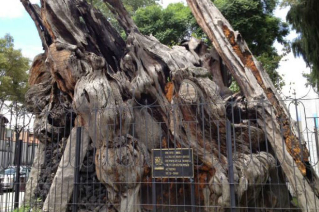 A lo largo de los siglos el que fuera un ahuehuete de grandes dimensiones ubicado en la Plaza de la Noche Triste en la alcaldía Miguel Hidalgo, se redujo a un pequeño esqueleto de tronco sin hojas que además sufrió un incendio por vandalismo en la década de los ochentas.