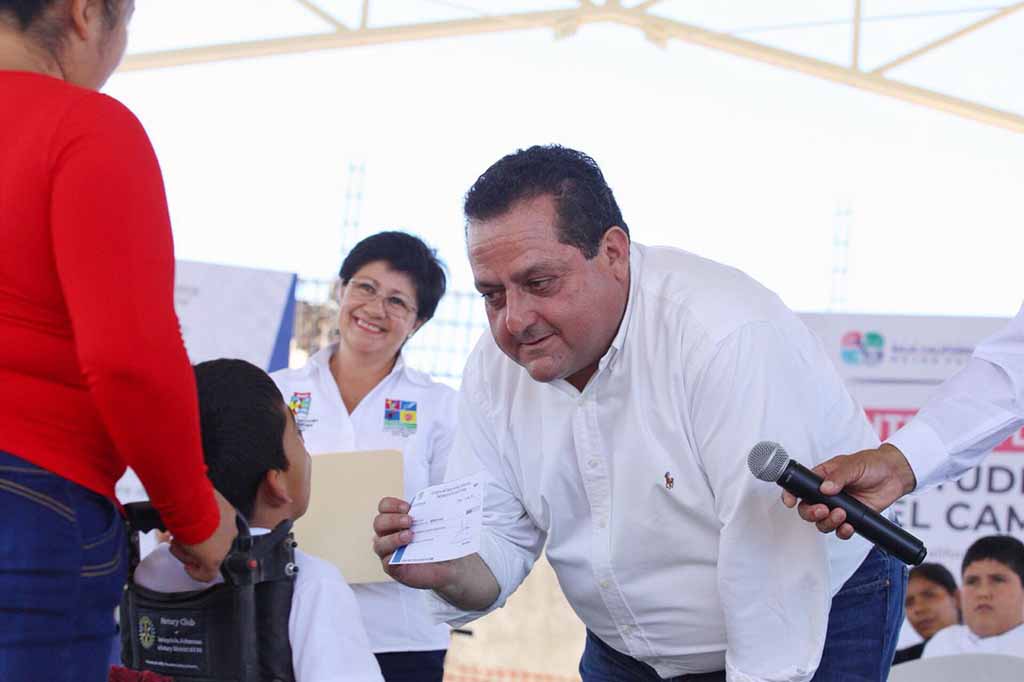 Acompañado por la alcaldesa Cecilia López González y por el secretario de Educación Héctor Jiménez Márquez, en las instalaciones del Centro de Atención Múltiple número 15, el Ejecutivo estatal hizo entrega de 251 apoyos, cuya finalidad es ayudar a niños y niñas con discapacidad que están estudiando, para que continúen en la escuela y tengan una mejor preparación, que posibilite su inserción en el mercado laboral.