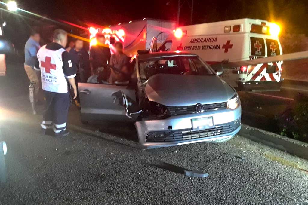 Informes dan a conocer que fue un carro color gris plateado Polo, de renta, el cual, al parecer perdió el control, chocó contra un poste de luz y quedó sobre el camellón de la carretera federal.