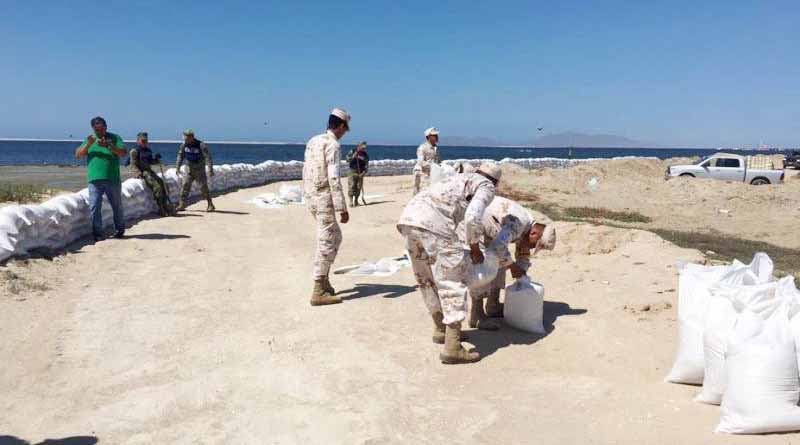 Con el apoyo de la Marina, Ejercito Mexicano y Delegación Municipal, el Ayuntamiento de Comondú trabaja en reforzamiento de partes débiles del bordo de Contención de Puerto San Carlos, buscando con ello evitar problemas de inundación, en caso de registrarse lluvias o fuertes marejadas, durante la temporada de lluvias.