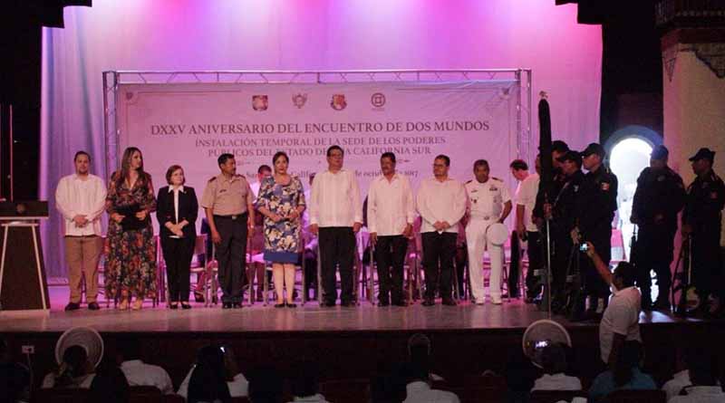 Con la representación del gobernador Carlos Mendoza Davis, el subsecretario general de gobierno, Esteban Beltrán Cota, encabezó la ceremonia del 525 Aniversario del Encuentro de Dos Mundos, marco que sirvió de referente para la instalación temporal de la sede de los Poderes Públicos del Estado, en la comunidad de Todos Santos.