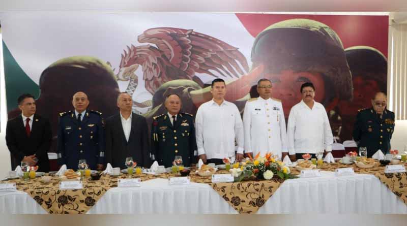 Con la representación del gobernador del Estado Carlos Mendoza Davis, el Secretario General de Gobierno, Álvaro De la Peña Angulo, asistió a la ceremonia realizada en el marco del 104 aniversario del Ejército Mexicano, acto que estuvo encabezado por el Comandante de la Tercera Zona Militar Edgar Humberto Flores García.