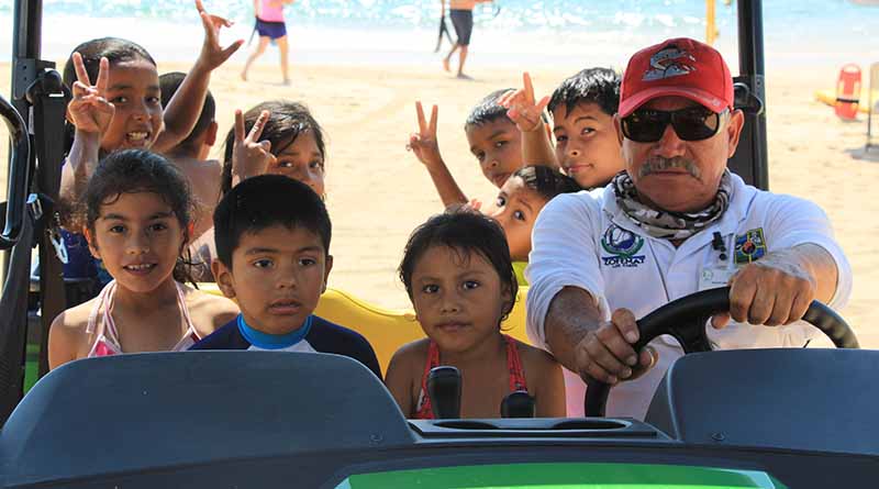 Finalmente los niños y jóvenes disfrutaron de un paseo por toda la playa a bordo de un vehículo Razer, el cual fue entregado recientemente por el presidente municipal, Arturo De la Rosa Escalante.