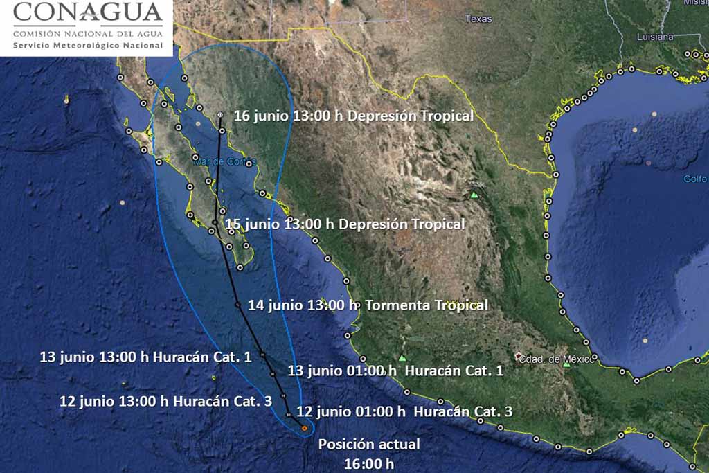 Los Cabos.- De acuerdo al más reciente reporte del Servicio Meteorológico Nacional el hoy huracán Bud de categoría 3, en la escala de Safir Simpson tocaría tierra en Los Cabos al degradarse como tormenta tropical.