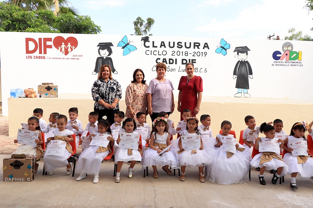 Los Cabos BCS., 03 Jul (Gobierno de Los Cabos). – 23 alumnos de la generación 2018-2019 del Centro Asistencial de Desarrollo Infantil (CADI) Centro y Cangrejos, a cargo del Sistema DIF en Cabo San Lucas egresaron de la sala de maternal III, culminando esta etapa para iniciar su ciclo de preescolar.