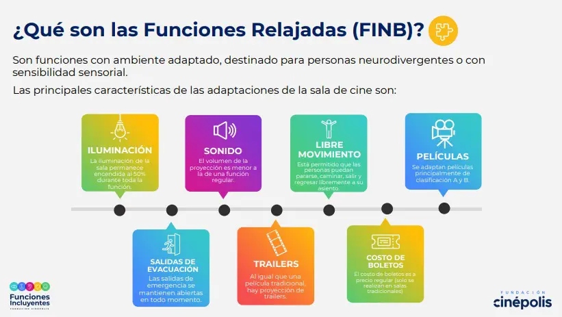 Para asegurar las condiciones adecuadas de proyección para el público con sensibilidad sensorial, las Funciones Relajadas cuentan con asesoría especializada. La ONG Iluminemos por el Autismo acompaña el programa; esta organización mexicana trabaja desde 2015 en promover el bienestar y la inclusión de personas con autismo.