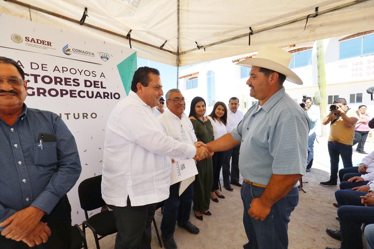 Luego de hacer entrega de apoyos por el orden de los 1.6 millones de pesos a productores agropecuarios del municipio de Los Cabos, el gobernador Carlos Mendoza Davis valoró la importancia de impulsar la organización y el ordenamiento de los sectores primarios de nuestro estado como principal estrategia para impulsar la productividad y competitividad de los mismos.