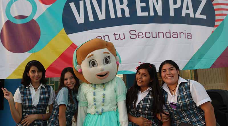 Con la finalidad de promover la prevención en el uso de drogas, el ciber acoso, violencia en el noviazgo y embarazos precoces, el Gobierno del Estado con apoyo de instituciones de los tres niveles de gobiernolleva a cabo en la Escuela Secundaria General No. 37ubicada en la colonia Miramar de la ciudad de La Paz,la semana de Convivencia Vivir en Paz, en la que participan los 300 alumnos del turno vespertino del plantel, informó la titular del Programa Escuela Segura de la Secretaría de Educación Pública, Alma Cecilia Silva Velázquez.