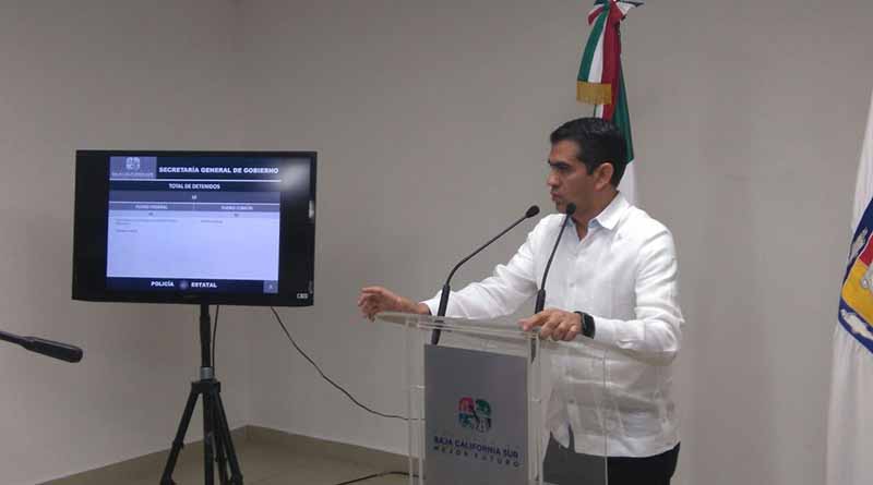 En el marco de la rueda de prensa sin opción a preguntas para los reporteros, el funcionario dio a conocer los resultados de los operativos implementados en San José del Cabo por el Grupo de Coordinación de Seguridad del Estado.