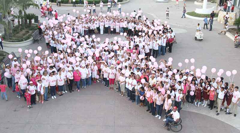 Al encabezar la marcha del día mundial contra el cáncer de mama, la presidenta del SMDIF Vianey Núñez de De la Rosa, acompañada del secretario general Luis Alberto González Rivera, consideró que sólo con la unión de esfuerzos y voluntades, se logrará sensibilizar a la población y con ello disminuir los índices de mortalidad que actualmente existen en el País y en caso particular en Los Cabos.