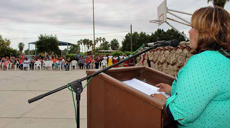 En la ceremonia que se llevó a cabo en la cancha pública del poblado de Villa Morelos, se contó con la presencia del coronel Cecilio Martínez Arcos, comandante del 17 RCM, Del representante de SEP en Comondú, Roberto Chacón Cárdenas, el subdelegado del lugar Juan Manuel Atilano González, supervisores y directivos de instituciones educativas y funcionarios municipales, la participación del jardín de niños y escuelas del lugar.