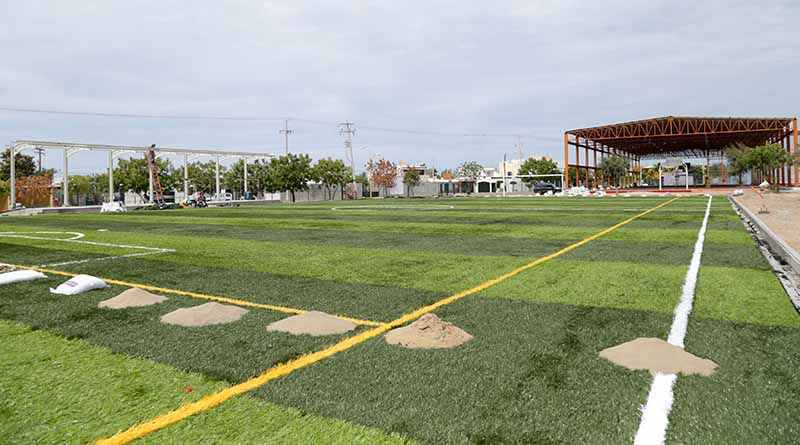 En ese sentido, resaltó que actualmente en este complejo se está llevando a cabo la construcción de gradas con techumbre que albergarán a más de 150 espectadores, además contará con pasto sintético, porterías fijas, y drenes pluviales que evitarán estancamientos en temporada de lluvias y dará una mayor vida útil a la obra.
