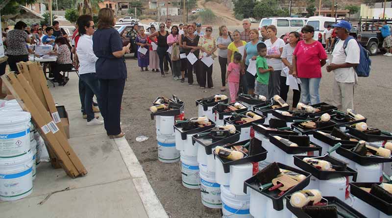“Este apoyo consiste en una cubeta de pintura, un sellador, esmalte para rejas ó puertas metálicas, charola, rodillo y brocha, donde los mismos ciudadanos serán quienes se encarguen de pintar las fachadas de sus casas, mejorando el aspecto y entorno del lugar en donde viven”, expresó Cuadras López.