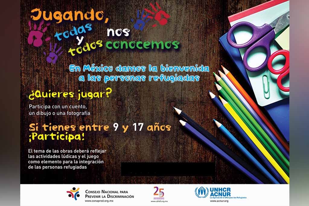 El Alto Comisionado de las Naciones Unidas para los Refugiados (ACNUR), y el Consejo Nacional para Prevenir la Discriminación (CONAPRED), a través del Instituto Sudcaliforniano de la Juventud (ISJ), invitan a las niñas, niños y adolescentes sudcalifornianos, a participar en el Décimo Concurso de Cuento, Dibujo y Fotografía 2018, informó Félix Abraham Almendáriz Puppo, director del ISJ.