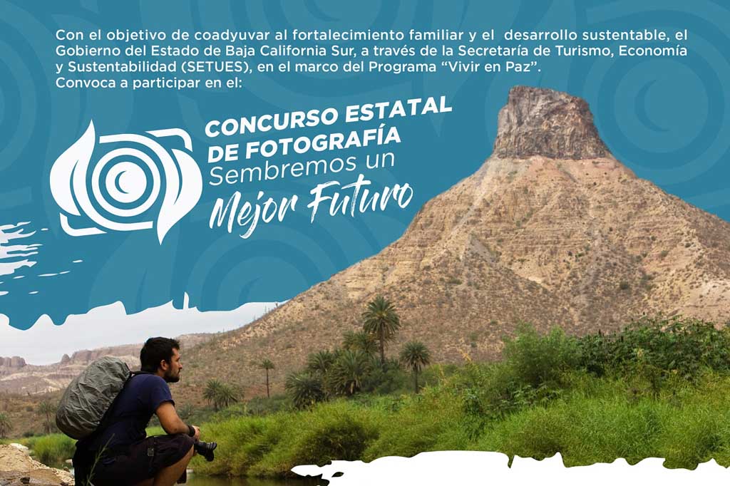 La Paz.- Con el objetivo de contribuir al fortalecimiento familiar, así como a fomentar una cultura de desarrollo sustentable, la Secretaría de Turismo, Economía y Sustentabilidad (SETUES), convoca a participar en el concurso estatal de fotografía “Sembremos un Mejor Futuro”, como parte del programa Vivir en Paz, dio a conocer el titular de la dependencia, Luis Humberto Araiza López.
