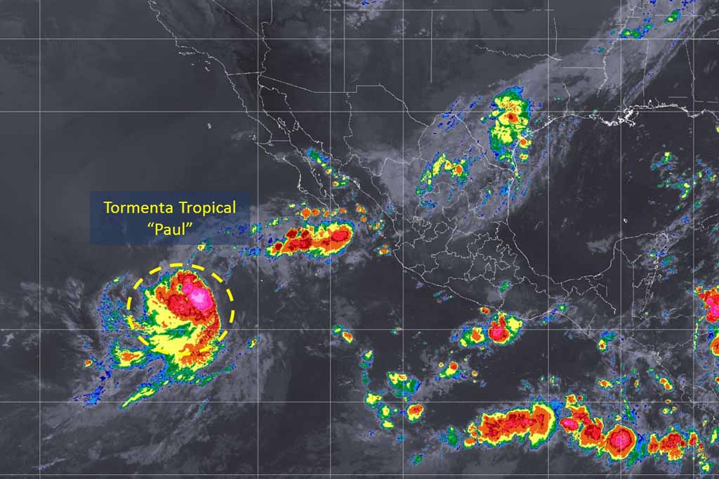 México, 9 Sep (Notimex).- El Servicio Meteorológico Nacional (SMN) informó que la depresión tropical 18-E se intensificó a la tormenta tropical Paul y se localiza al suroeste de las costas de Baja California Sur.