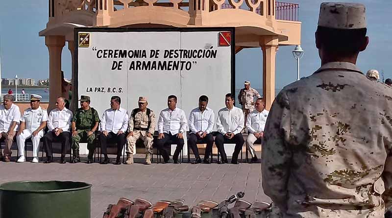 La Paz.- Esta mañana, la Secretaría de la Defensa Nacional y los organismos que integran la III Zona militar destruyeron 867 armas de fuego y diverso material de uso bélico, con lo que se reafirma el esfuerzo conjunto de gobiernos, sociedad y fuerzas armadas, para alcanzar el objetivo y aspiración de todos: un México en paz.