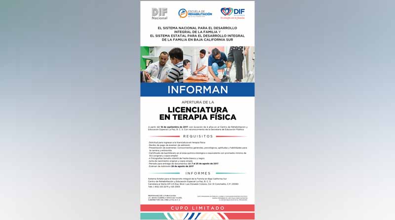 - El Sistema Nacional y Estatal DIF dan a conocer la apertura de la Licenciatura en terapia física