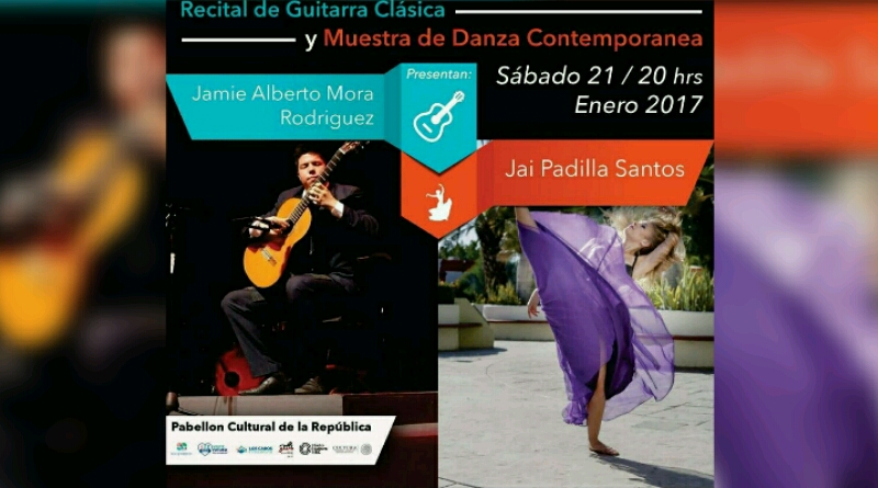 Cabo San Lucas.- Este sábado 21 de enero en punto de las 8 de la noche, el teatro principal del Pabellón Cultural recibirá a dos talentos sudcalifornianos reunidos para presentar el Recital de Guitarra Clásica y Muestra de Danza Contemporánea; se trata del joven Jaime Mora Rodríguez y Jai Padilla Santos.