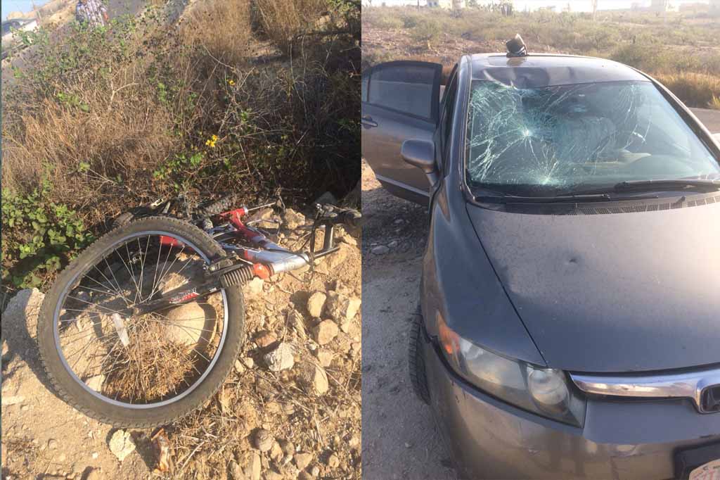 Todos Santos, BCS.- Un vehículo Honda Civic, modelo 2006, color gris conducido por un jubilado atropelló esta mañana a un hombre de 46 años que se transportaba en su bicicleta, lamentablemente el ciclista perdió la vida.