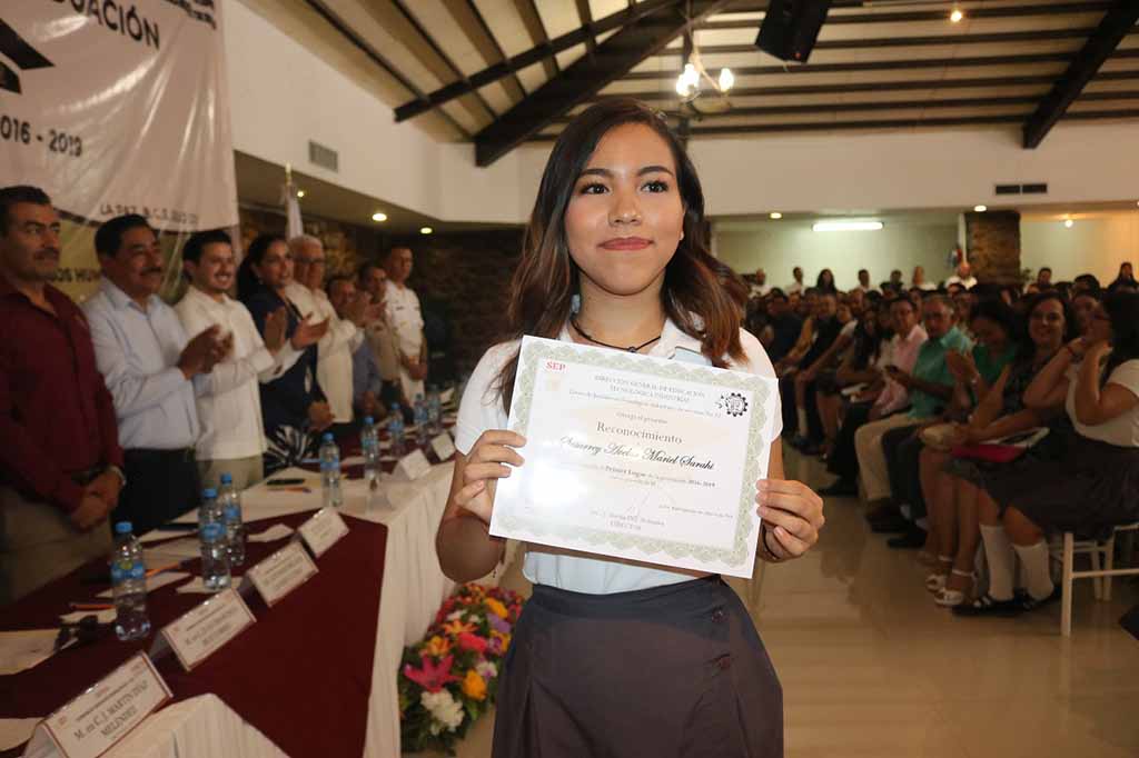 En la ceremonia se otorgó una medalla al mérito al maestro Alfonso Rochín Ramírez, por 30 años de fructífera labor en la formación de generaciones, además se entregaron diplomas a los estudiantes con mejores promedios y un reconocimiento especial a la estudiante Mariel Sarahí Susarrey Avelar, de la carrera Técnico en Logística, quien obtuvo promedio de 10 de la generación con promedio de 10.