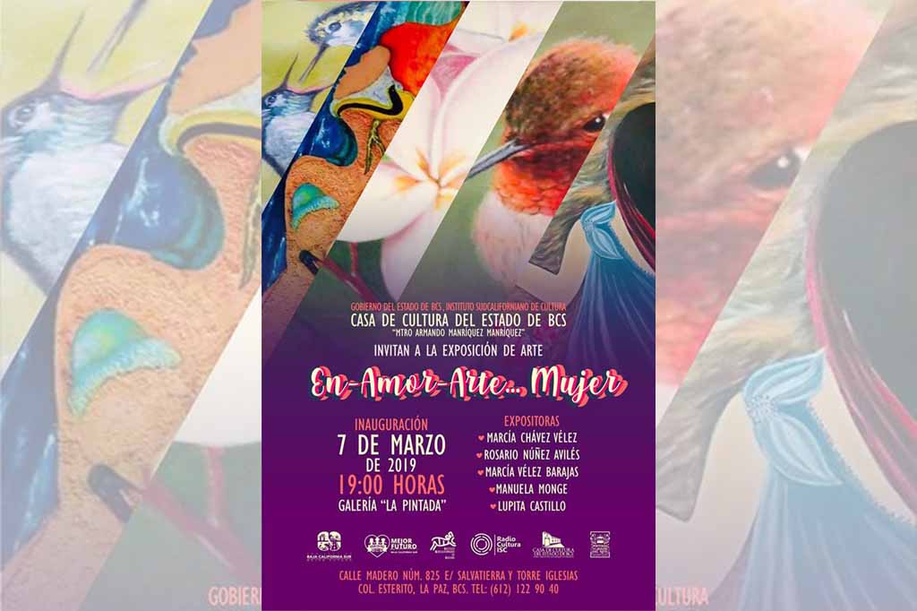 La Casa de Cultura del Estado, llevará a cabo la exposición colectiva “En –Amor –Arte…Mujer”, con la finalidad de mostrar el trabajo artístico de pintoras sudcalifornianas, mencionó el director del Instituto Sudcaliforniano de Cultura (ISC) Christopher Amador Cervantes.