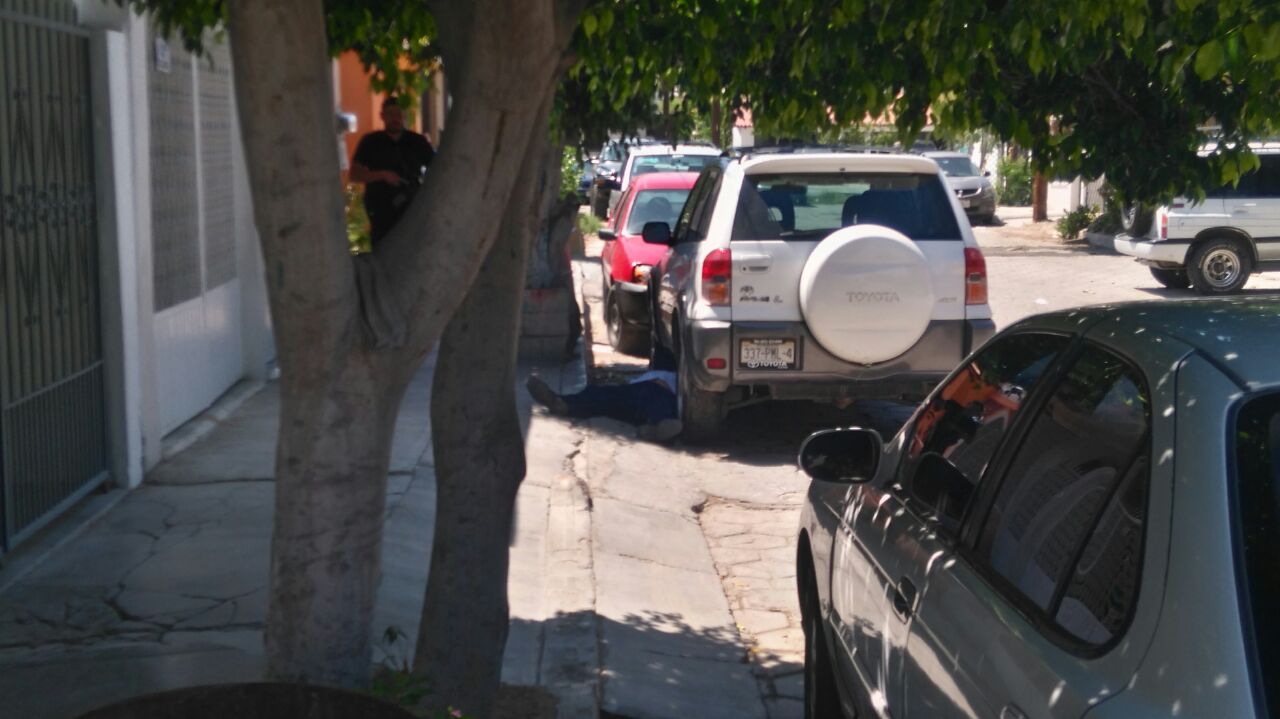 A la vuelta, en las calles Colosio y callejón Fosforita, en medio de una fila de carros estacionados quedó el cuerpo de uh hombre.