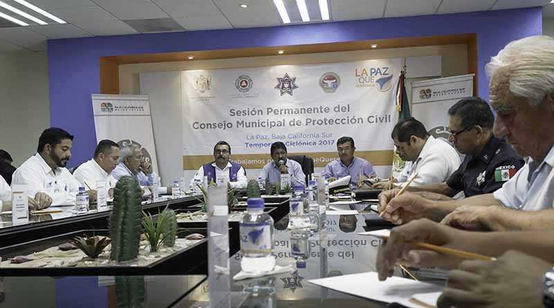 En Sesión Permanente del Consejo Municipal de Protección Civil encabezada por el Alcalde de La Paz, Armando Martínez Vega se dieron a conocer los últimos reportes que se tienen tras el impacto de la Tormenta Tropical “Lidia”, donde se reconoció la coordinación con todas las instancias de protección y auxilio antes, durante y posterior al fenómeno meteorológico.