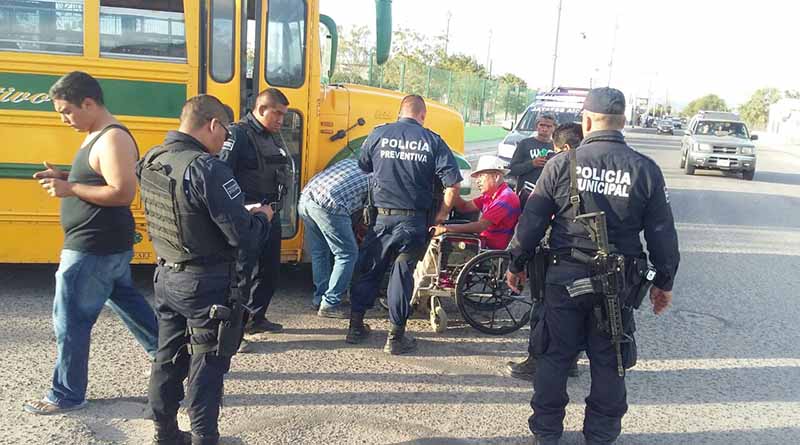 Información obtenida señala que alrededor de las 5:00 de la tarde un hombre discapacitado de nombre Juan Manuel Olachea Higuera, encadenó su silla de ruedas a una de las llantas de un camión de pasajeros detenido en las calles de Miramar y Dunas.