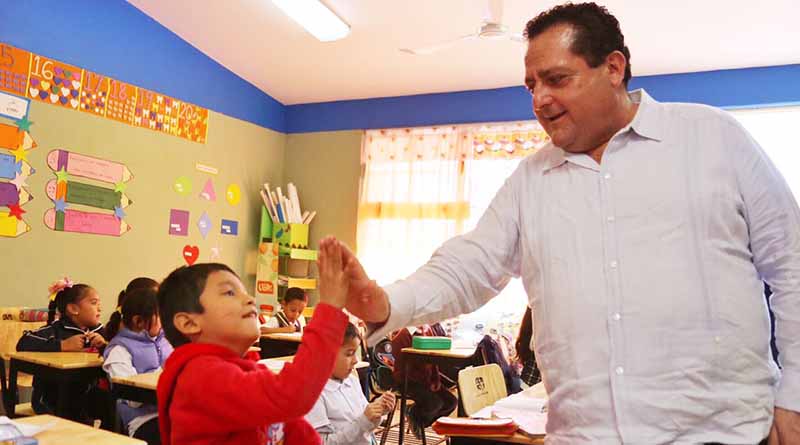Acompañado por la Sra. Gabriela Velázquez, presidenta del sistema DIF y de la alcaldesa de Loreto, Arely Arce, en la primaria “Mercedes Davis Pérpuli” de Loreto, donde entregó un aula didáctica y equipamiento, el ejecutivo estatal destacó que una de las mejores maneras de construir y heredar una mejor sociedad, es fortaleciendo la infraestructura y los programas educativos y en esta administración se ha trabajado para dotar de nuevos planteles, más aulas, reconstruir las existentes y mejorarlas para el mejor desempeño de las presentes y futuras generaciones.