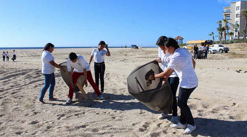Los estudiantes de la escuela secundaria Técnica 14 de la colonia San José Viejo, participaron en la jornada de limpieza que convocó la coordinación de Educación Ambiental de la Zona Federal Marítimo Terrestre en el arroyo contiguo a Cabo Real sobre la Carretera Transpeninsular.