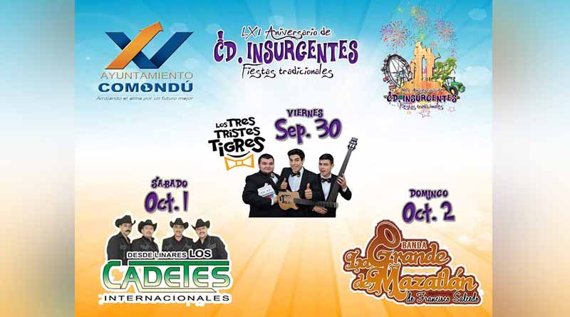 Se han sumado esfuerzos para que los habitantes de Ciudad Insurgentes cuenten con una Feria digna, conmemorativa al LXI aniversario de su fundación, entre gobierno del estado, del Instituto Tecnológico Superior de esta ciudad, colaboración de artistas locales, con elenco artístico y cultural de la Casa de la cultura y escuela municipal de Música y el Ayuntamiento de Comondú, indico el director de Cultura, Acción Cívica y Social, profesor Jesús Montes Alvarado quien hizo extensiva la invitación para que asistan con toda la familia.