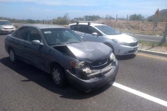 Cabo San Lucas.- Hace unos momentos un fuerte accidente se registró en el km 11 de la carretera transpeninsular en dirección a Cabo San Lucas y en donde tres vehículos se vieron involucrados en un choque carambola, aunque hasta el momento no se tiene registro de personas lesionadas, unidades de emergencia y policiacas acudieron al lugar de los hechos para dar fe y así poder deslindar responsabilidades.