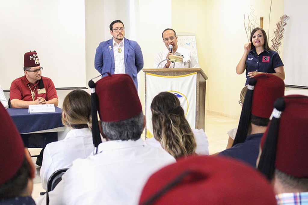 Con la presencia del doctor Oscar Cañedo, potentado de la asociación Bahr internacional, y del maestro en ciencias Geen Yeem, jefe rabban de la organización, el presidente de Club Shriner de La Paz y Los Cabos, José Luis Cortés Mendez dijo que ese encuentro con autoridades estatales se efectuó con la intención de difundir la labor de esta organización no gubernamental entre los trabajadores de salud en el estado, de tal manera que puedan solicitar el apoyo correspondiente en caso de recibir un paciente infantil con quemaduras.