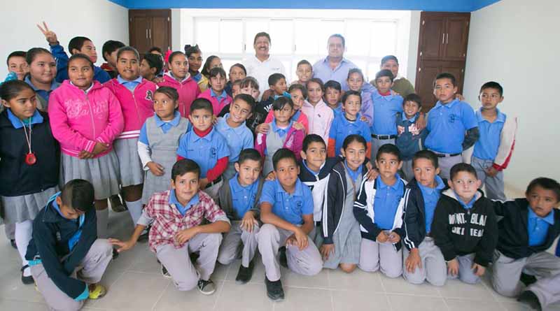 Acompañado del alcalde, Armando Martínez, el ejecutivo visitó Puerto Chale, donde hizo entrega de los trabajos de rehabilitación de la escuela Secundaria Número 5; entre las que destacan nueva techumbre e instalaciones sanitarias; asimismo verificó la construcción de un aula didáctica en la primaria Benito Juárez, en la localidad de Las Pocitas, la cual dijo, será una obra sustentable ya que contará con sistema fotovoltaico, lo que redundara el aprovechamiento de la energía solar a favor del alumnado y la comunidad.