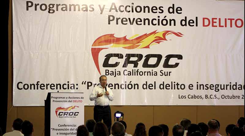 Cabo San Lucas.- Con el llamado de trabajar en conjunto por el bien común para evitar que esa situación de deterioro que ya registra La Paz no se presente en Los Cabos, se está a tiempo de hacer un frente común, un trabajo organizado para fortalecer la seguridad integral a través del programa de Comunidades Seguras de México, así lo afirmó Oswaldo Basurto Flores, director operativo de la Asociación Nacional de Consejos de Participación Cívicas, en el marco de la Conferencia “Prevención del Delito e Inseguridad, Tenemos que Participar Todos Juntos”, organizada por el sindicato de la CROC que dirige el Senador Isaías González Cuevas.