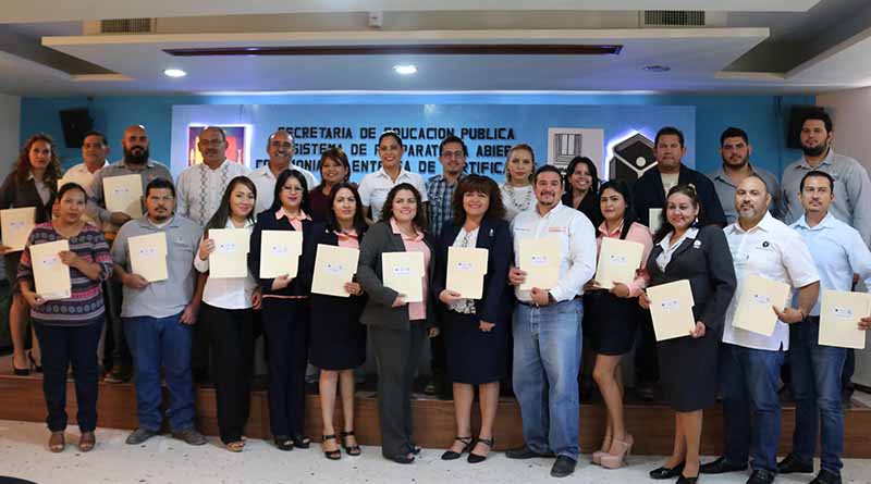 “La capacitación del trabajador es muy importante, ya que es el punto fuerte para que exista un desarrollo exitoso”, apuntó José Refugio Carrillo Sánchez, director de Planeación y Evaluación Educativa de Secretaría de Educación Pública (SEP), al presidir en representación del titular de la SEP, Héctor Jiménez Márquez, la ceremonia de entrega de 19 Certificados de Preparatoria Abierta a personal administrativo de la dependencia estatal que culminó satisfactoriamente sus estudios de este nivel educativo.