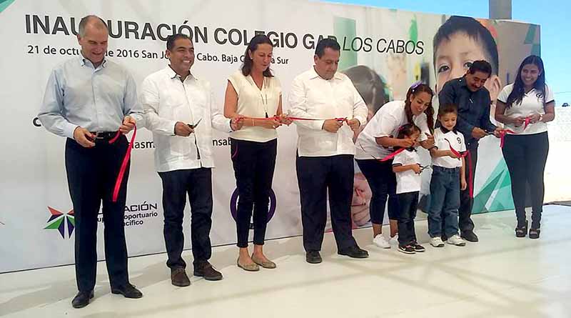 San José del Cabo.-En el marco de la gira de trabajo del gobernador Carlos Mendoza Davis y el presidente municipal Arturo de la Rosa fue inaugurado esta mañana el Colegio de alto rendimiento del Grupo Aeroportuario del Pacífico para niños de escasos recursos en el fraccionamiento Costa Dorada.