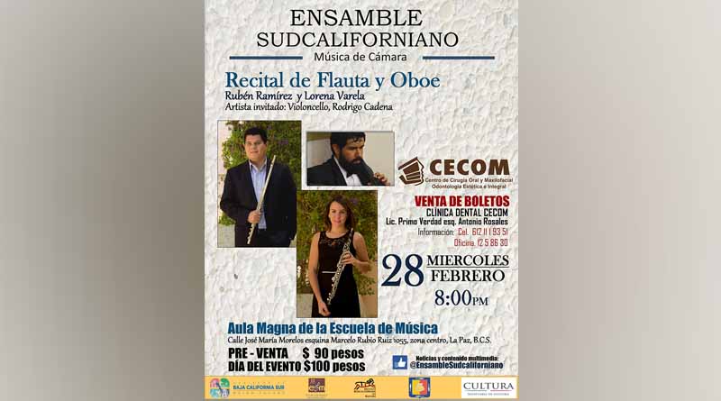 Por último, Amador Cervantes hizo una invitación para asistir a este concierto el próximo miércoles 28 de febrero a las 20:00 horas, en la Aula Magna de la Escuela de Música de la ciudad de La Paz ubicada en José María Morelos y Pavón, Colina de la Cruz, para obtener más información comunicarse a los teléfonos 6121119351, (612)1258630.