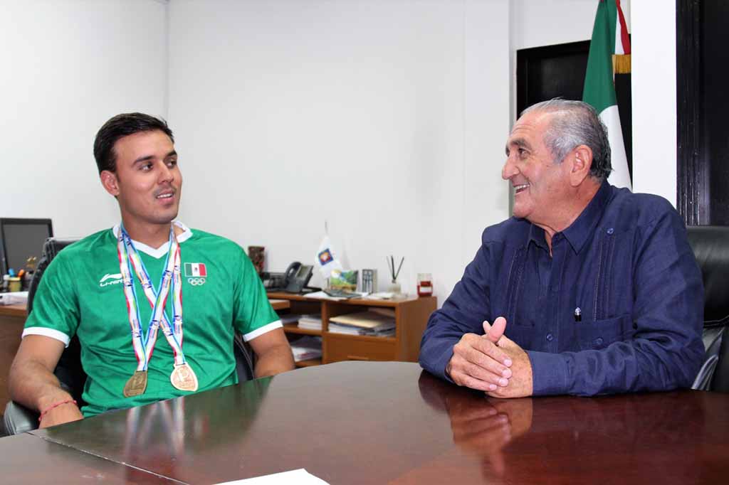 El arquero sudcaliforniano estuvo este día en las instalaciones del Instituto Sudcaliforniano del Deporte, donde fue recibido por el director general, José Ávila Geraldo, quien lo felicitó por su reciente triunfo en el panamericano de Medellín, donde conquistó la medalla de oro individual y bronce en equipo mixto junto a Esmeralda Ochoa.