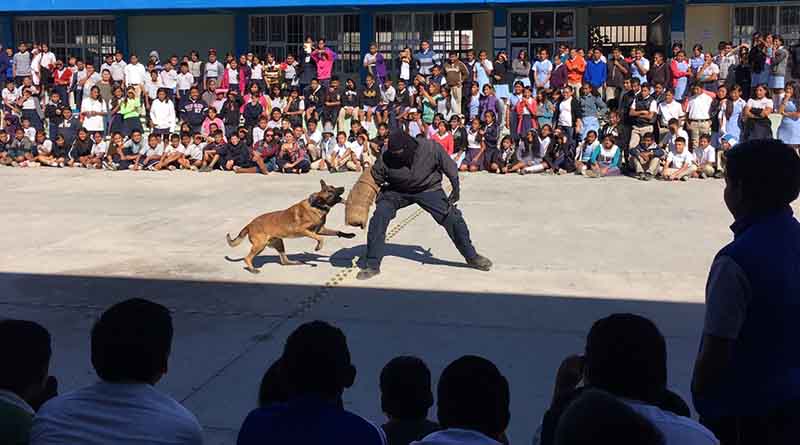 Como respuesta a esta iniciativa, este miércoles, comenzaron con una exhibición por parte de Alejandra de la Vega, quien es encargada de la Dirección y Vinculación Ciudadana de la Dirección Municipal de Seguridad Pública, quien llevó a las escuelas al Comandante Ignacio Romero Arce, encargado del Grupo Táctico K9 con 4 perros entrenados para detectar sustancias tóxicas y armas.