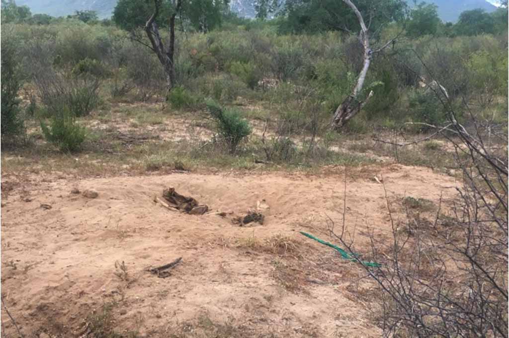 Al lugar se trasladaron elementos de Investigaciones de la Policía Ministerial del Estado y peritos adscritos a la Dirección de Servicios Periciales, localizaron a un lado de la brecha que conduce al predio la Ballena, restos de tres osamentas humanas.