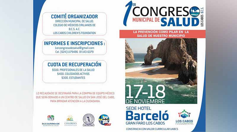 El Gobierno de Los Cabos en conjunto con el Colegio de Médicos Cirujanos de B.C.S. y Los Cabos Children´s Foundation realizarán el 1er. Congreso Municipal de Salud “La prevención como pilar en la salud de nuestro municipio” el 17 y 18 de noviembre en el Hotel Barceló Gran Faro Los Cabos en San José del Cabo; así lo dio a conocer el director municipal de Salud, Acxel Holmos Vizcaíno.