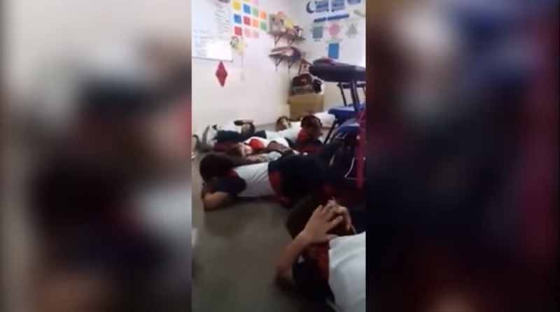 Desde hace 4 días, circula por las redes un video en donde una maestra de primaria de Ciudad Obregón, Sonora, finge un simulacro mientras se escucha una balacera a las afueras del plantel educativo.