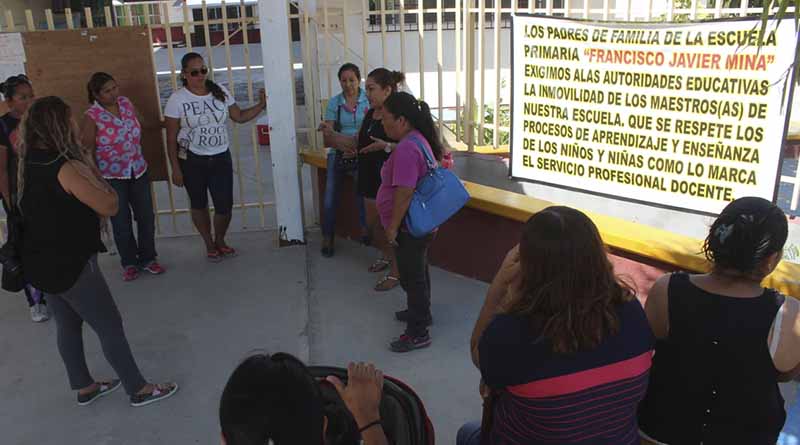 San José del Cabo.- Molestos e inconformes padres de familia de la escuela primaria Francisco Javier Mina, ubicada en la colonia Santa Rosa, turno vespertino, amenazan con tomar las instalaciones de la institución, pues aseguran que en lo que va del ciclo escolar, al grupo de tercer grado le han cambiado 5 veces el maestro.