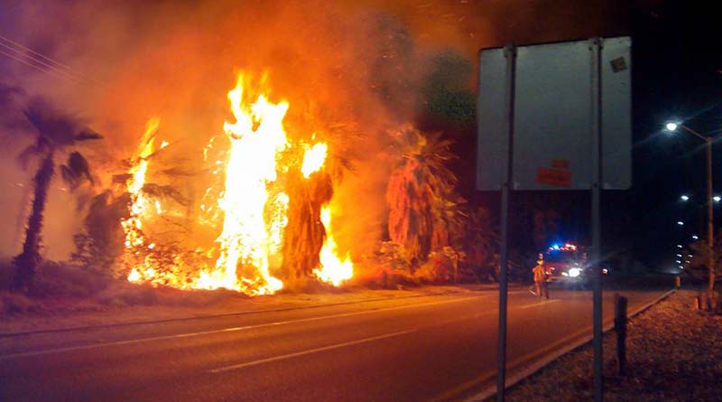 En el lugar los Bomberos sofocaron las llamas de palmeras y pastizales.