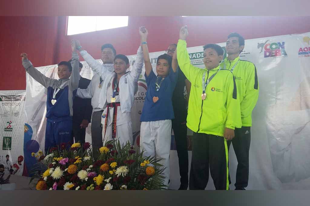 El alumno Jorge Luis Trujillo Pérez, del colegio “María Fernanda” de La Paz, fue el primer sudcaliforniano en subir al pódium en los Juegos Nacionales Deportivos de la Educación Básica Nayarit 2018, al obtener medalla de bronce en la disciplina de Taekwondo, categoría de menos 50 kilogramos, informó la directora de Educación Física de la Secretaría de Educación Pública Estatal, Luscelly Gómez Herrera.