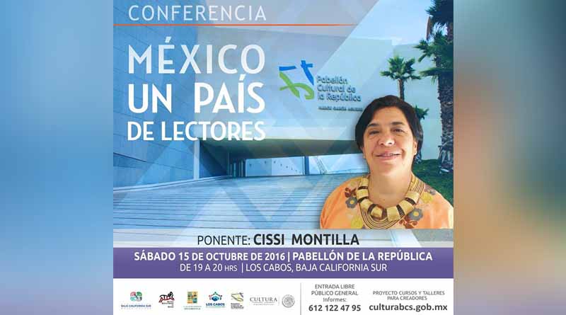 El Instituto Municipal de Cultura y las Artes te invita a la conferencia “México un país de lectores” por la ponente Cissi Montilla, éste sábado 15 de octubre de 7:00 a 8:00 de la noche en el Pabellón Cultural de la República, en el área de la alfombra roja.